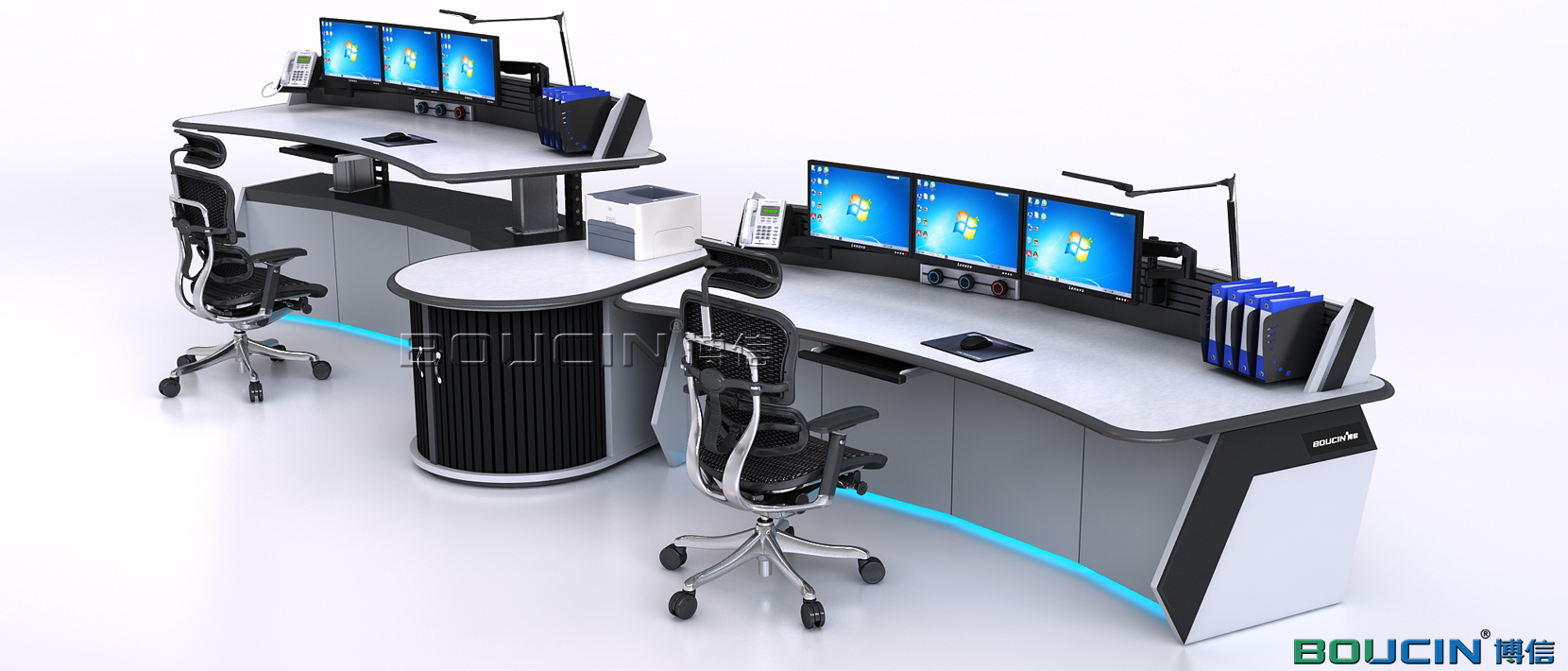 博信控制臺(tái)BO SHARK CONSOLE系列產(chǎn)品采用了簡單的坐 站方式來解決控制中心的人性化挑戰(zhàn):讓工作環(huán)境滿足用戶的使用需求。博信控制臺(tái)讓終端用戶通過觸控式按鈕來實(shí)現(xiàn)對(duì)工作環(huán)境的完全掌控。